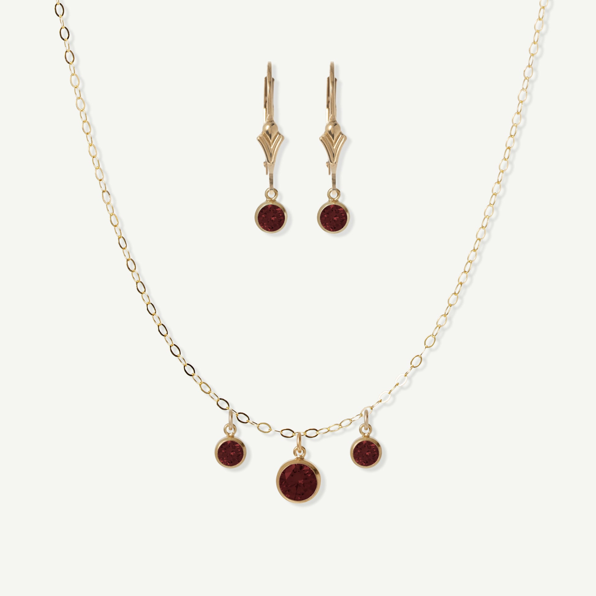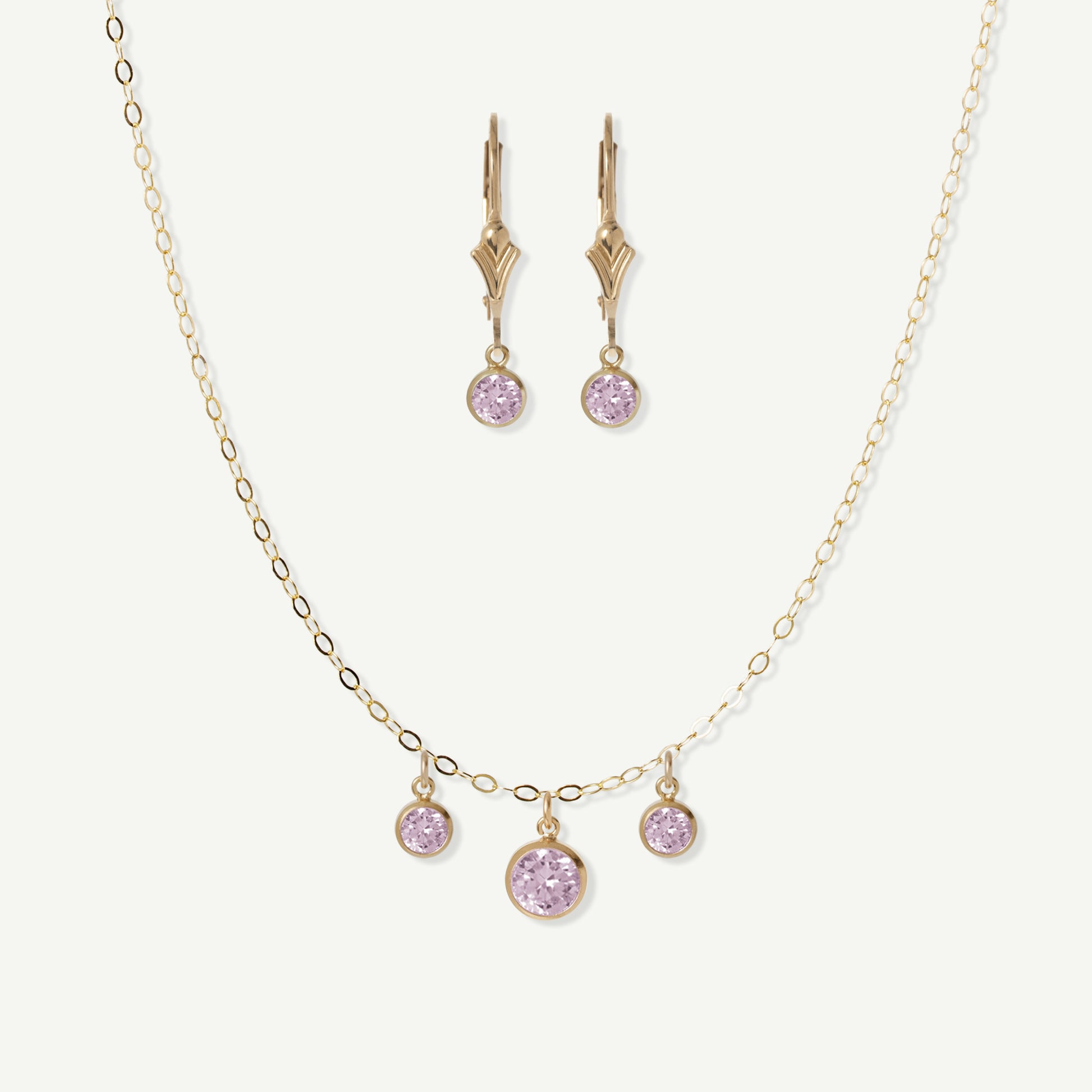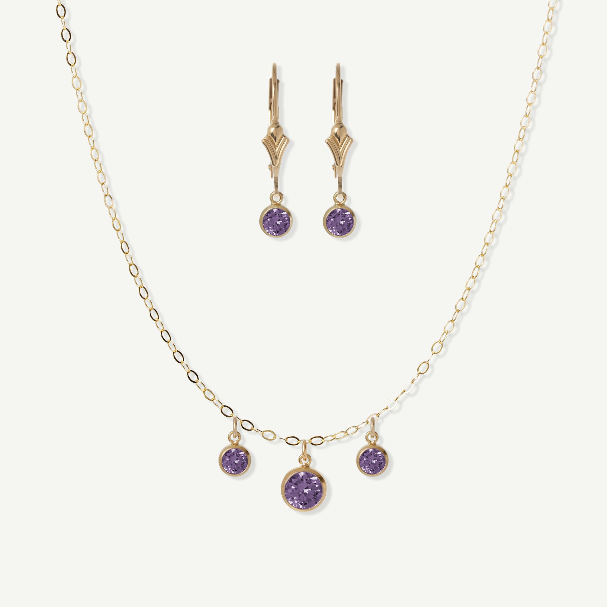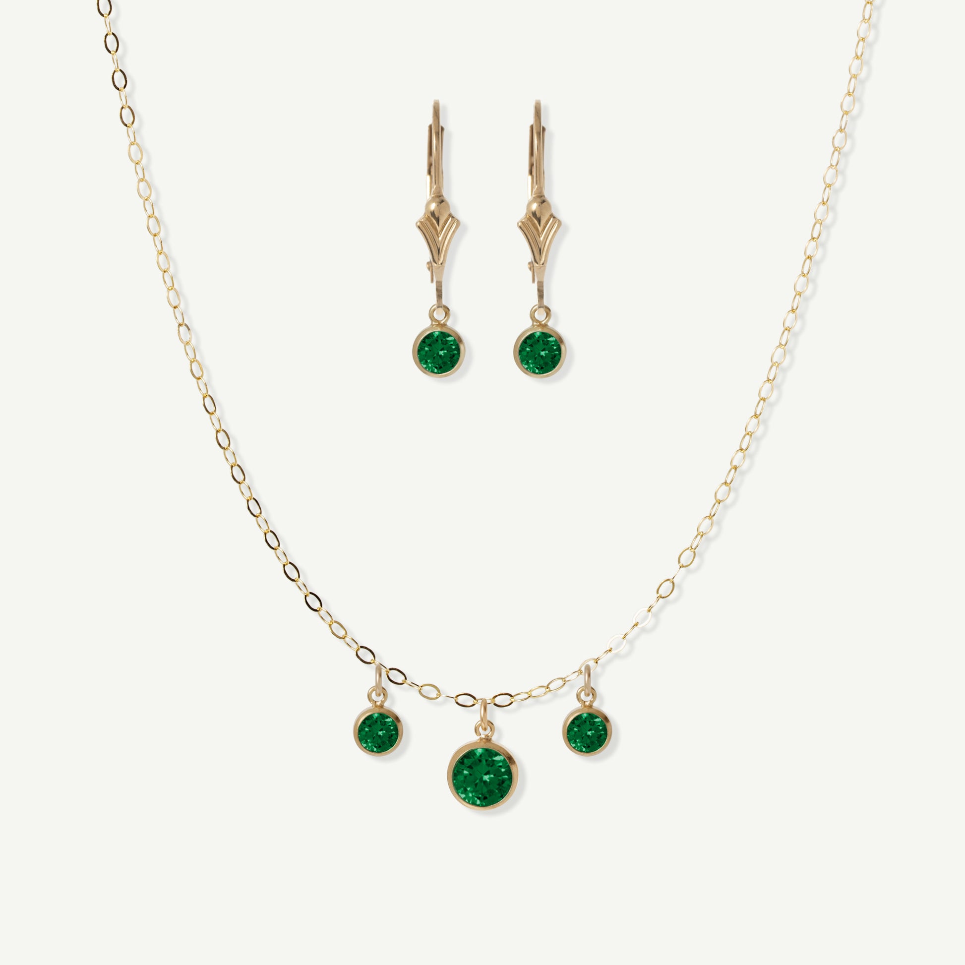 - 14k Gold Filled chain and earrings, drops are colored Cubic Zirconia
