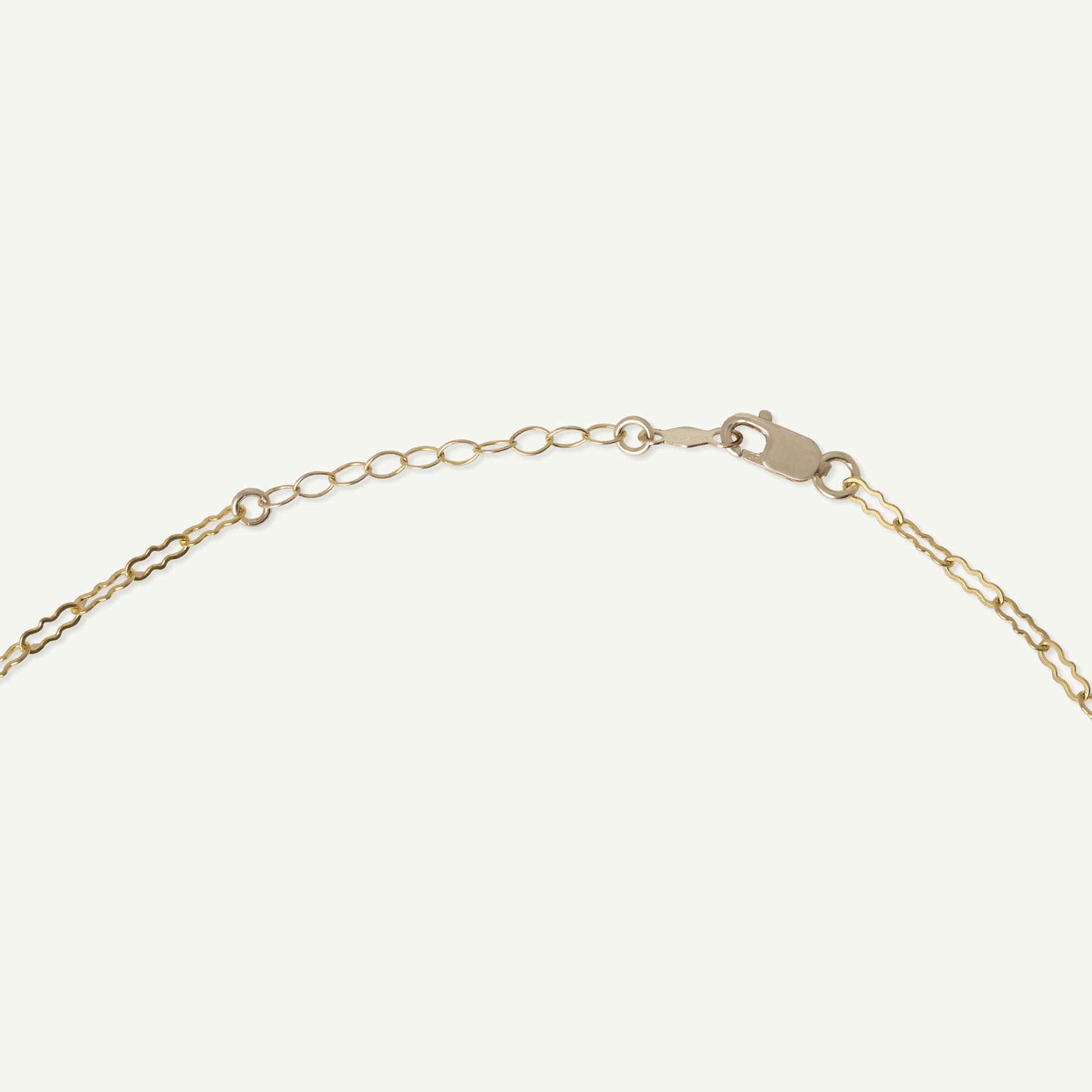 Sometimes the simplest pieces make the strongest statement. The Zia Chain is a dainty 14k gold-filled necklace designed to add effortless texture and shine — whether introducing subtle depth to a layered stack or gracing your neckline all on its own.